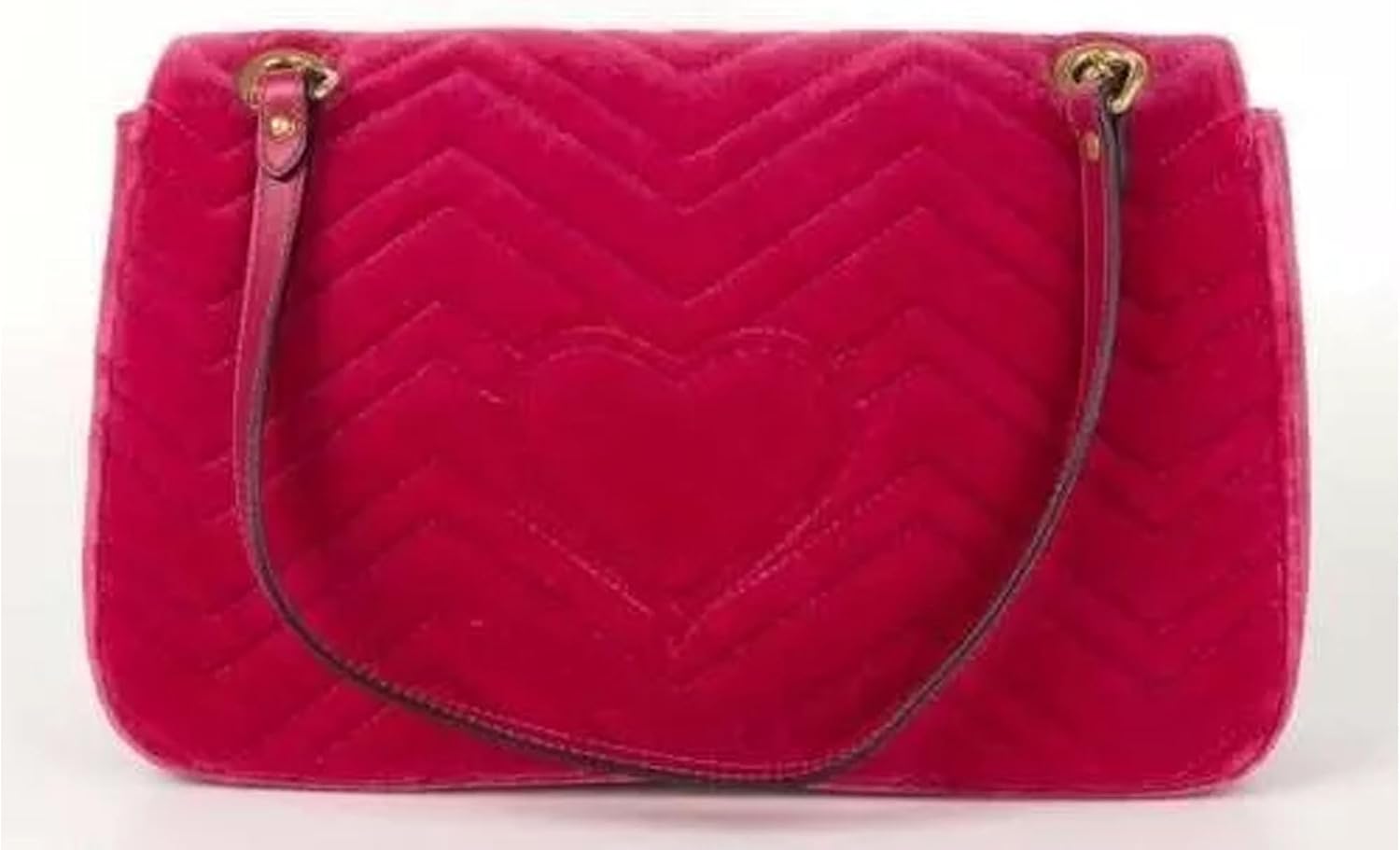 Gucci Blind For Love Pink Velvet Handbag Bag Marmont GG Gold Italy New Blind For Love Marmont Bag In Pink Velvet VELVET . T.AN.CH.C/S/B V/M/P RO.B.P.VIOLET MAGENTA Style: 4434969frvt5571 With Silk Lining And Gold-Tone Hardware Pockets: One Interior Slip Pocket, One Interior Zip Pocket Measurements: 11.5In Long X 3In Wide X 8In High; 11.5In Handle; 26In Strap Accompanied By Branded Dust Bag Accompanied By Care Cards Pushlock Closure Our Products Are 100% Genuine. This is a gorgeous classic bag from the 2017 Cruise collection that is sold out everywhere. 100% Authentic Comes with dust bag Lenght 11.75 (30cm) Height 6.75 (17cm) Made in Italy. Certificate of authenticity and tags. Dustbag Beautiful and durable!