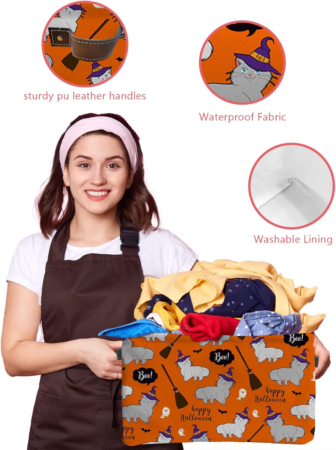 【Waterproof Storage Baskets】Polyester inner coated with thick waterproof coating, waterproof and durable, and can stand independently, so you can throw clothes in or get out easily.When you are bathing or naughty children play with water, it can also effectively prevent water splashing on the clothes in your basket.The fabric baskets are easy to clean, dusting the basket with a soft dry cloth is recommended. Spot clean with light soapy water when needed.