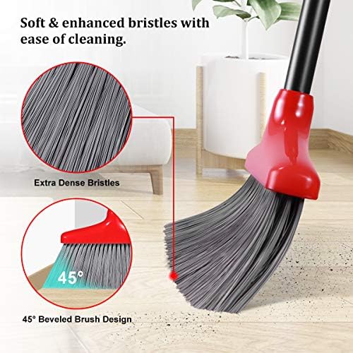💒Easy to Use: HOMEMAXS broom and dustpan set has an upgraded height of 52 inch, which is more convenient. Now you can clean just by standing instead of bending over.