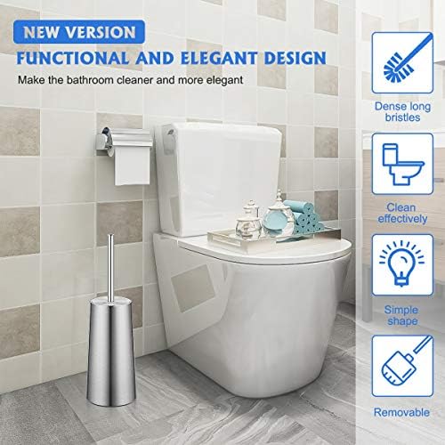 🚾【BEAUTIFUL AND PRACTICAL 】The toilet brush with best rounded shape,you will ever use. Upgraded modern 2020 design – simple and compact design will feel like decoration with any kind of tiles. New improved dense bristles and super decontamination will gives you a clean toilet.