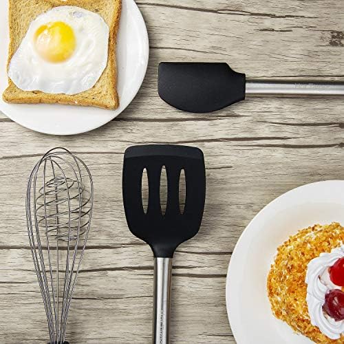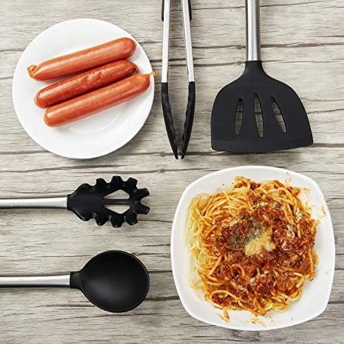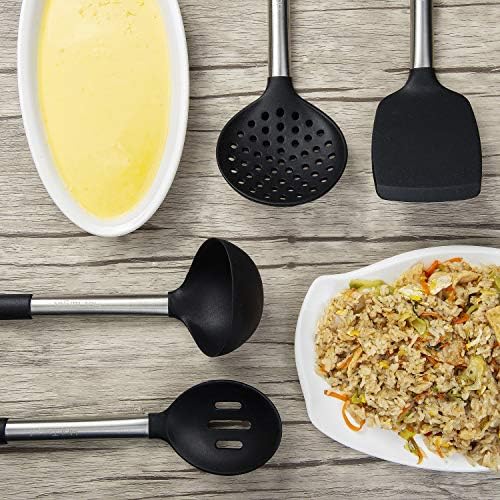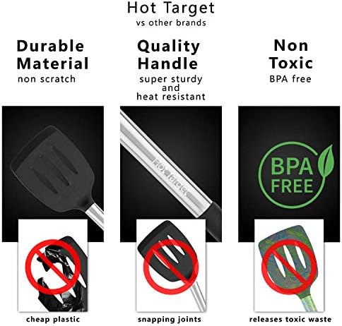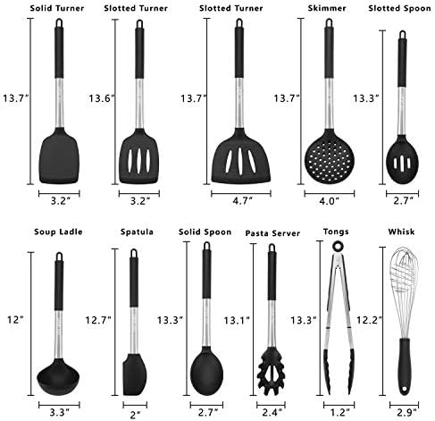 ✅ULTRA NON SCRATCH PROTECTION: Each set comes with 11 cooking utensils made from highly durable 430 stainless steel handles that are far more durable than other utensil sets. The nonstick silicone heads are heat resistant up to 480 °F and designed to protect the non-stick surface of your precious cookware. This will keep your pans & pots safe from scratching. Stress-free cooking!