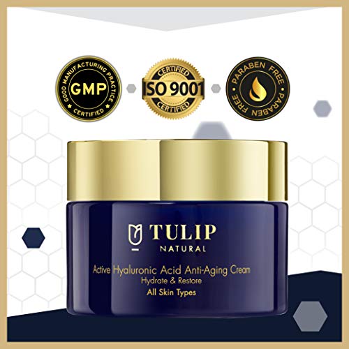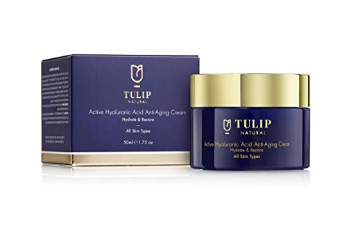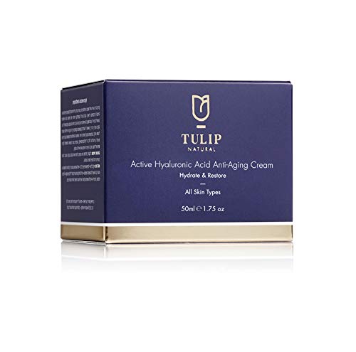 As time passes, your skin loses its formerly full glow. Year after year, UV rays, free radicals, dehydration, and more cause your skin to crease and wrinkle. You lose elasticity, collagen, and most importantly, self-assurance. Tulip Natural is here to help. The Active Hyaluronic Anti-Aging Cream Hydrate & Restore fades those wrinkles by delivering healing vitamins to each layer of skin. Collagen production is boosted, wrinkles are smoothed, and confidence is restored with Tulip Natural!