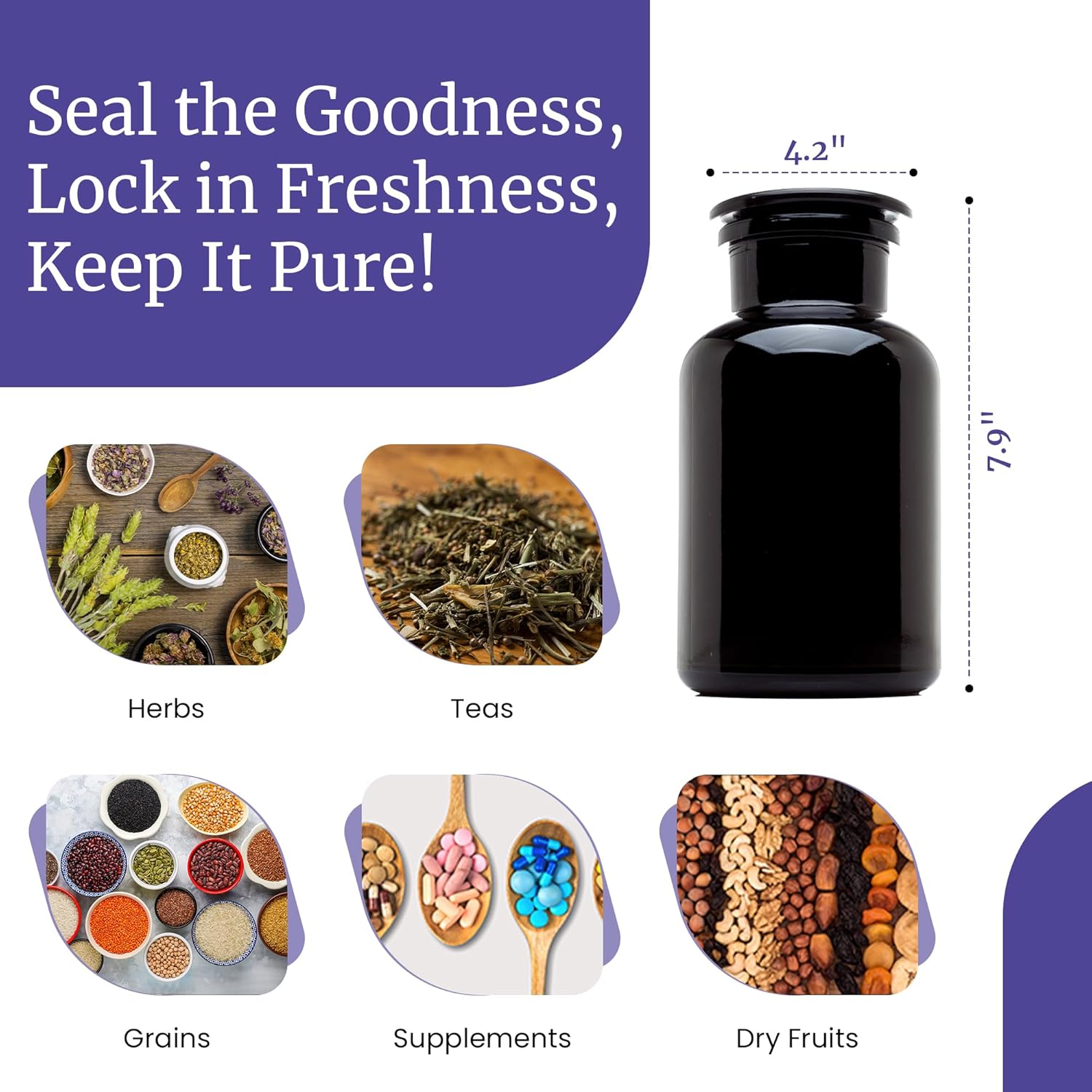 𝗦𝘂𝗽𝗲𝗿𝗶𝗼𝗿 𝗨𝗩 𝗣𝗿𝗼𝘁𝗲𝗰𝘁𝗶𝗼𝗻 & 𝗔𝗿𝗼𝗺𝗮 𝗟𝗼𝗰𝗸: Made with laboratory-tested black ultraviolet glass that blocks harmful light to preserve potency and fragrance of dried goods and herbal blends