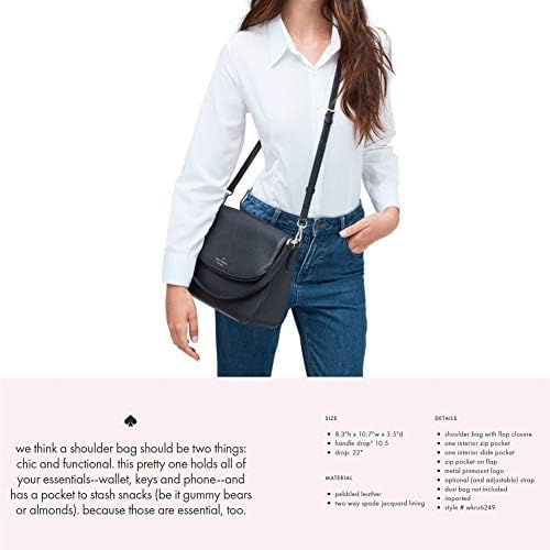 Zip pocket on flap; adjustable removeable shoulder/crossbody strap with approximate drop of 22″