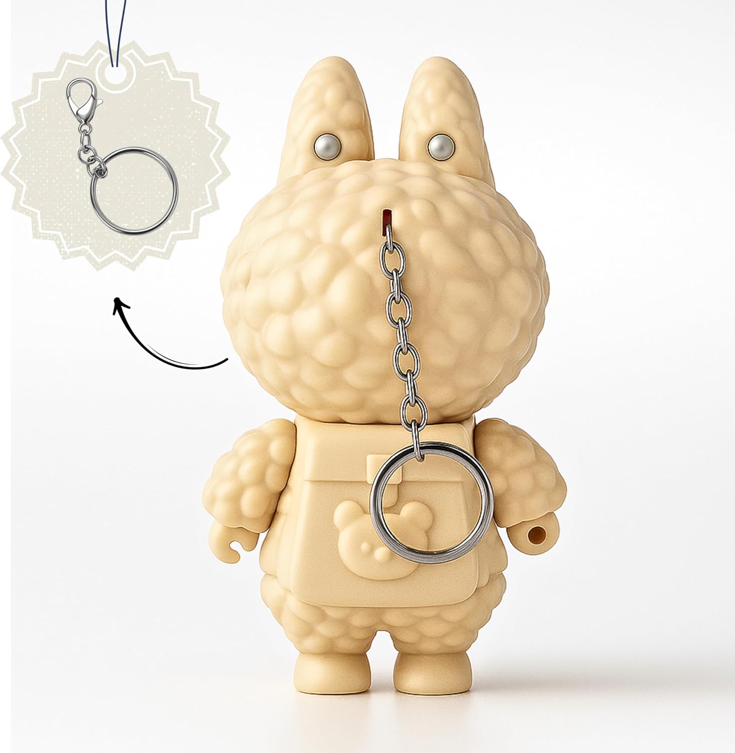 Labubu Keychain with Changeable Faces, Cartoon Key Chain for Bag Charms Handbag Purse Backpack Accessories-Brown
