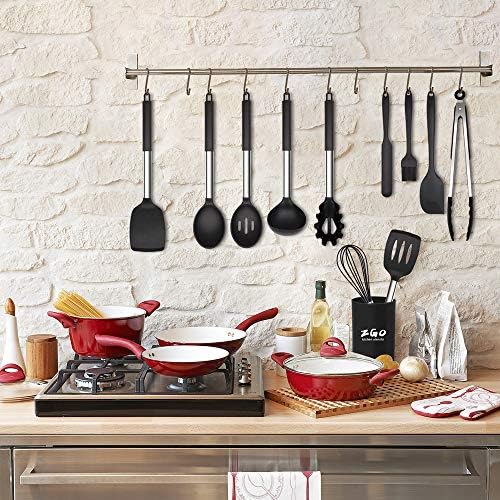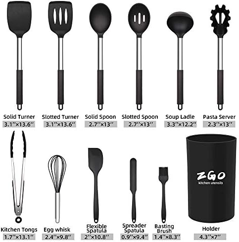 🍳【Professional Kitchen Utensils Set】- ZGO Kitchen Utensils Set includes Solid Turner, Slotted Turner, Solid Spoon, Slotted Spoon, Soup Ladle, Pasta Server, Kitchen Tongs, Egg Whisk, Flexible Spatula, Spreader Spatula, Basting Brush,Measuring Spoons and Holder. Meets all your cooking needs, saves you time looking for kitchen utensils and makes cooking much easier