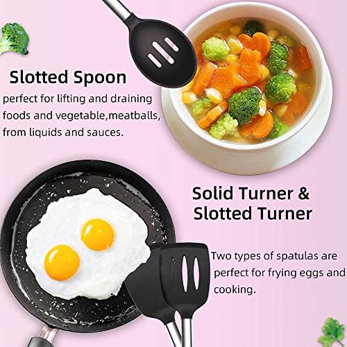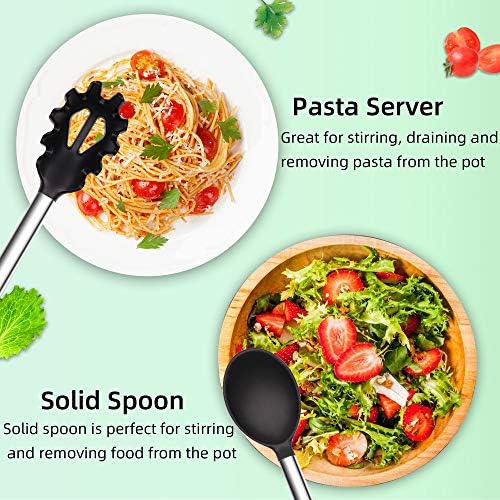 🍳【High-Temperature Resistant Design】- Kitchen Utensil Set is resistant to -40℉ to 446℉. The contact area with the pot and bowl is made of silicone material. First, it will not scratch the pot during use, protect the non-stick coating, and secondly, it will not make collision noise