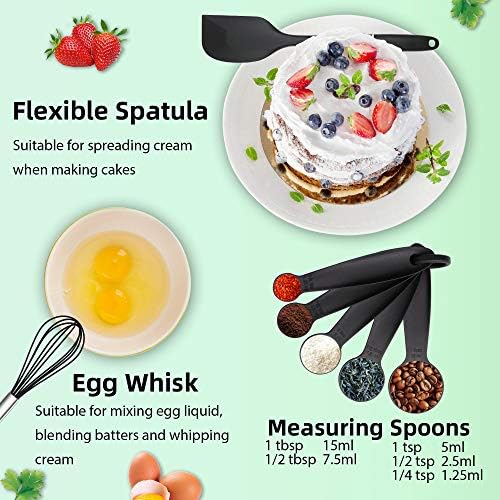 🍳【Food-Grade Materials】 – Silicone kitchen set made from safe and durable food-grade materials,food-grade silicone is safe to use for any type of food – it does not react with food or beverages, or produce any fumes