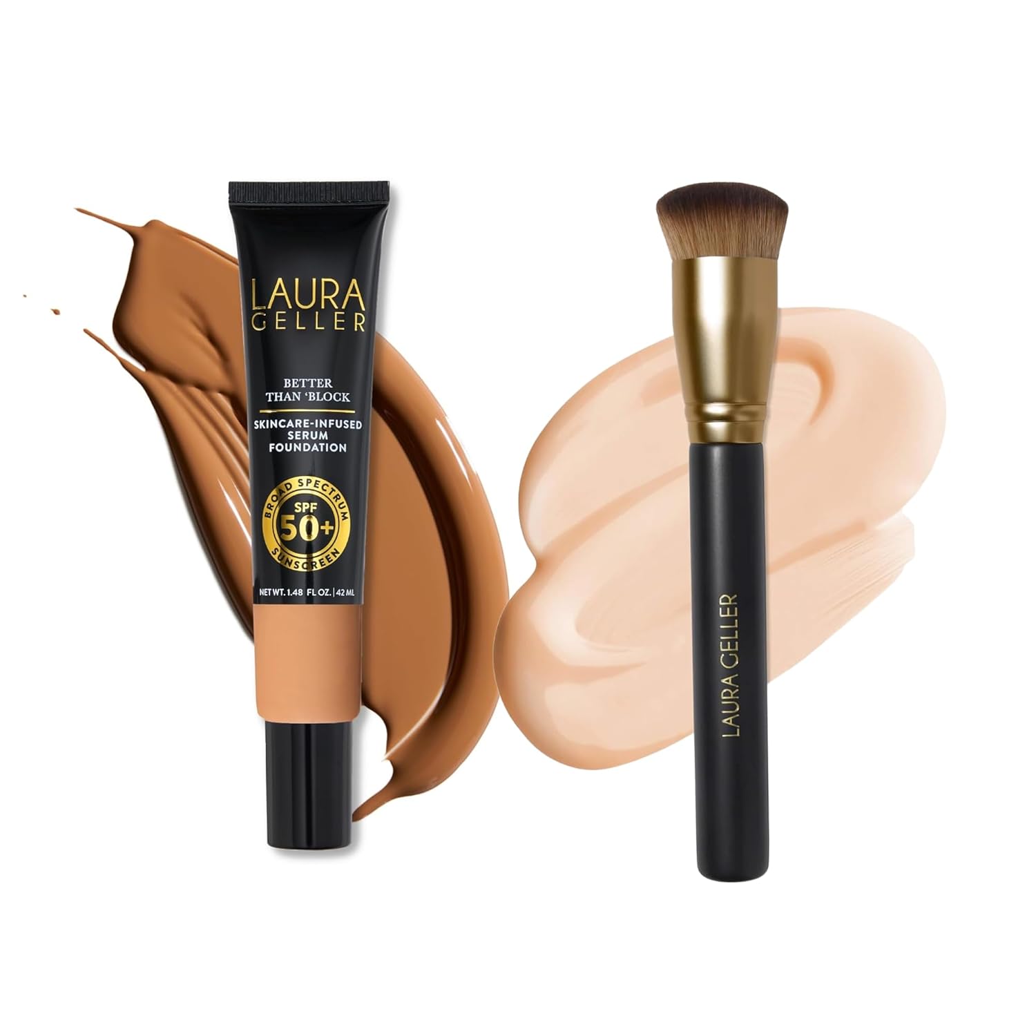 LAURA GELLER Better Than ‘Block + Foundation Brush – Skincare-Infused Serum Foundation Broad Spectrum SPF 50+, sand