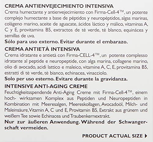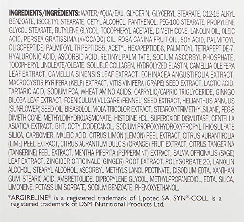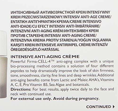 Powerful Firma-CELL-4 anti-aging complex with a unique bio-processing method contains a solution of four different peptides (SYN-COLL, Tetrapeptide-3, Oligopeptide and Argireline) to help dramatically improve the look of skin firmness, tone, smoothness, clarity, fine lines and deep wrinkles. Additional anti-aging benefits come from Lactic and Maleic AHAs, Vitamins A, C and E, Pro Vitamin B5, Sea Algae and botanicals.