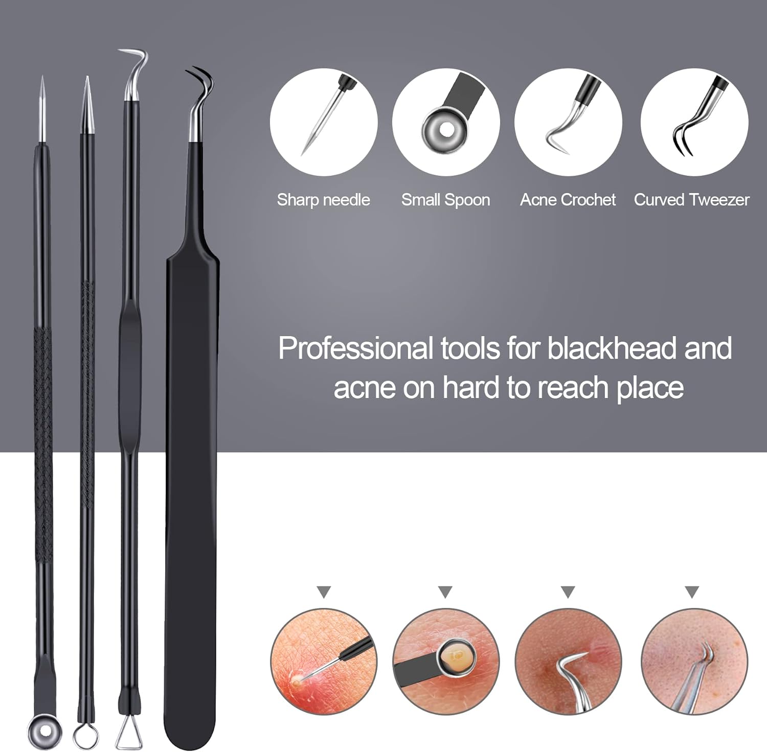 Applicable Skin: Our pimple extractor set is fit on all types of skin, like sensitive face, oily skin, dry skin, especially suitable for acne skin.