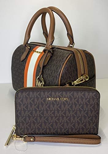 Bundle of 3 items: MICHAEL Michael Kors Bedford SM Duffle Satchel bundled with matching Michael Kors Jet Set Travel Multifunction Phone Case Wallet/Wristlet and Michael Kors Purse Hook Holder
