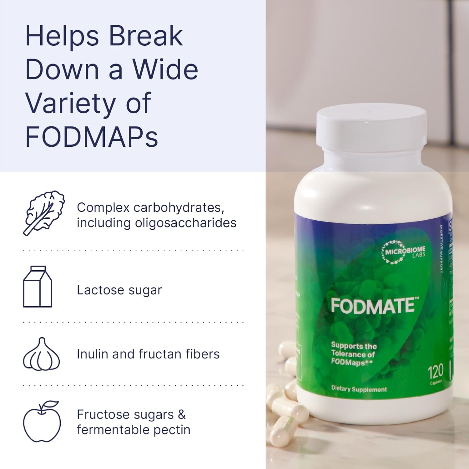 Tackle Occassional FODMAP-Related Bloating & Gas – FODMATE digestion support includes an innovative blend of digestive enzymes for women and men. It’s designed for short-term use and can support digestive health while promoting relief from the occasional gas, bloating, cramping, diarrhea, and stomach issues that stem from high FODMAP foods.*