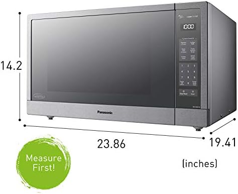 When it comes to everything you expect in a microwave, nothing compares with the defrosting, cooking and reheating capability of the Panasonic NN-SN97JS Countertop/Built-In Cyclonic Wave Microwave Oven with Inverter Technology and Genius Sensor. At every temperature level, Cyclonic Wave circulates heat in precision, ultra-efficient 3D waves for easier, more versatile food preparation–even with denser, more complex food textures. This exceptional 1250-Watt, 2. 2-cubic-foot capacity stainless steel microwave with 16. 5-inch turntable also includes patented Inverter Technology which, unlike traditional microwaves that rely on pulse-on, pulse-off power at lower temperatures, delivers a constant stream of cooking power at every temperature for more evenly cooked meals – edges to centers – every time. With the touch of the Genius Sensor cooking button, this microwave takes guesswork out of creating a great meal by automatically setting power levels and adjusting cooking or defrosting time for added time-saving convenience. The sensor measures the amount of steam produced during cooking and signals the microprocessor to calculate the remaining cooking time at the appropriate power level. A selection of 20 auto cook options enable you to quickly prepare your favorite foods, such as pizza, popcorn, pasta, soup, oatmeal and other dishes. This Panasonic microwave oven externally measures 14″ x 23 7/8″ x 19 7/16″ (H x W x D).