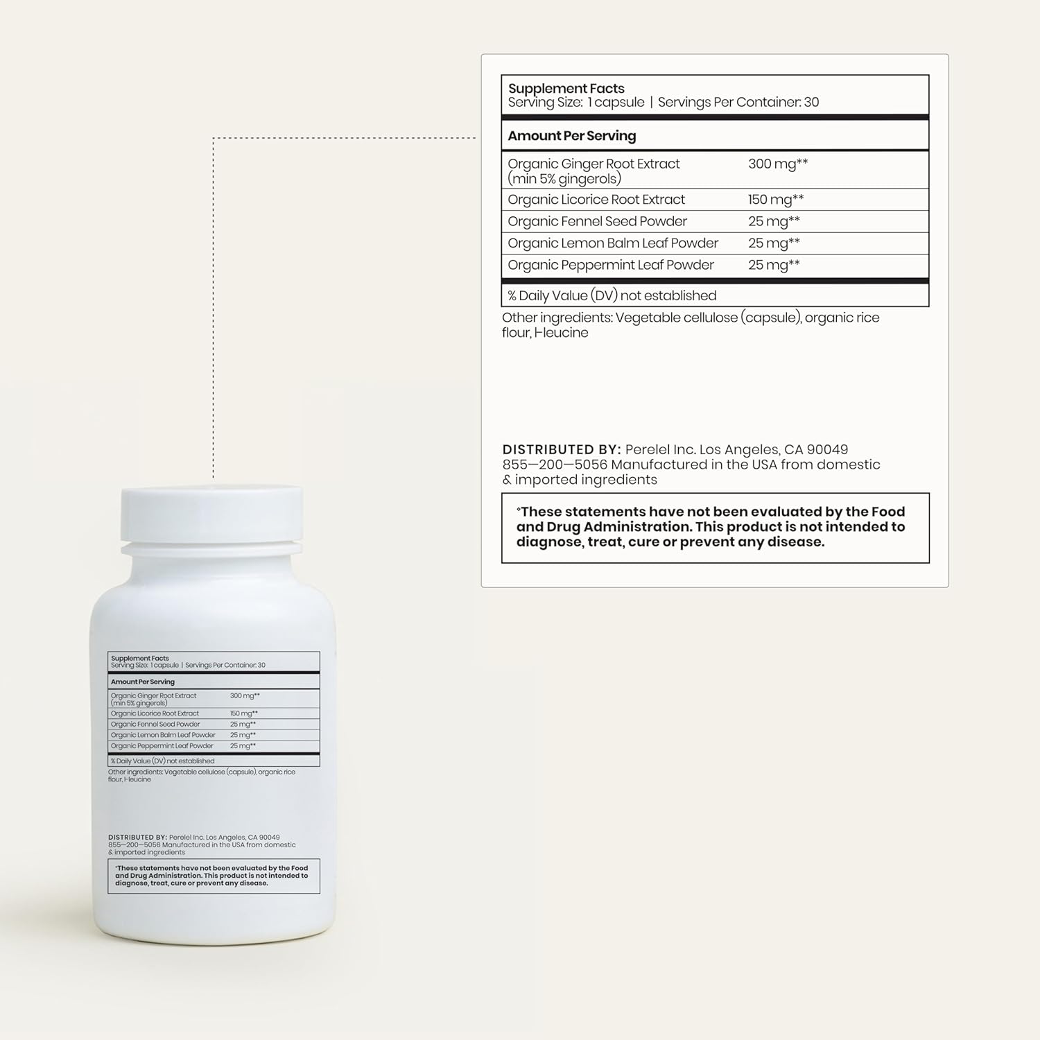 Perelel Digestive Health Supplement with Organic Ginger, Lemon Balm, & Fennel, to Support Gut Health & Digestive Comfort, Botanical Supplement for Women & Men, Soy, Dairy & Gluten Free, 30 Pills