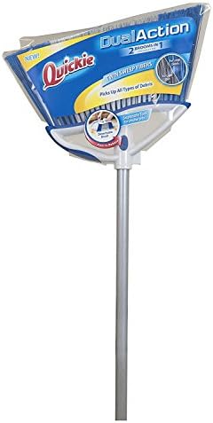 Great for large areas, the Quickie Dual Action Large Angle Broom boasts a 14.5-inch sweeping width plus two brooms in one. It’s a combination of an all-purpose angle broom with a handheld dust brush. Simply push and release the button to use as a handheld dust brush with comfort grip for smaller clean ups. As an upright broom, the handle measures 48-inches and is made of powder coated steel. This premium grade broom features dual “Twin Sweep Fibers” which sweep all types of debris. The soft grey broom fibers sweep and gather small dust and dirt while the stiff blue broom fibers reach and gather large debris. The angled cut design provides easy access to reach and sweep corners and crevices. Above the fibers, the over-molded bumpers protect walls from scuff marks. The hole built into the end of the broom handle makes it easy to hang when not in use. The Quickie Dual Action Large Angle Broom combines two cleaning tools in one for efficient, convenient sweeping on multiple surface types from garages to hardwood floors. Quickie designs, manufactures and distributes over 300 cleaning products for traditional in-home use as well as contractor and DIY grade applications. The product line includes mops, brooms, dusters, dustpans, brushes, buckets and other supplies.
