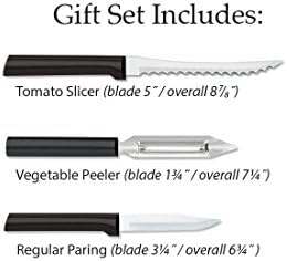 3 PIECE KITCHEN GIFT SET – This kitchen utensil set comes with Rada’s Regular Paring knife, Vegetable Peeler and Tomato Slicer. They come beautifully boxed with a form-fitted insert holding each utensil securely in place.