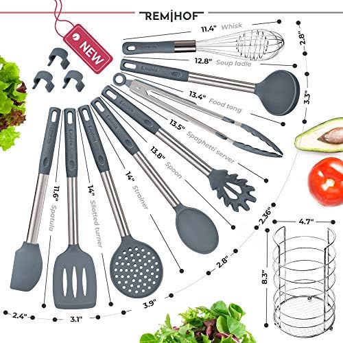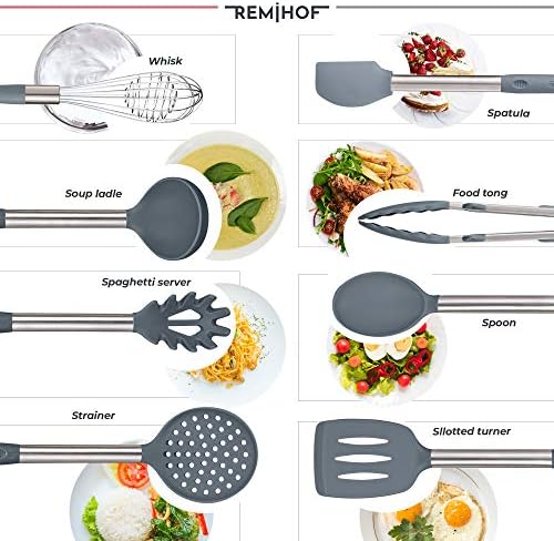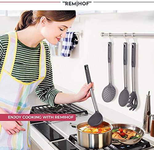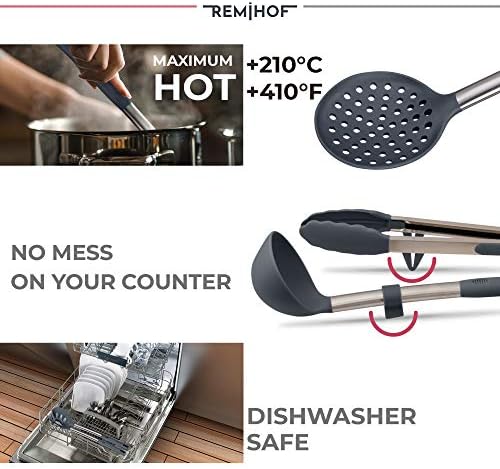 🧼 SAFE & HYGIENIC – BPA free, and food-grade cooking utensils set won’t damage your non-stick cookware because it’s non-scratch, non-stick, stain and heat resistant (up to 410ºF), dishwasher safe