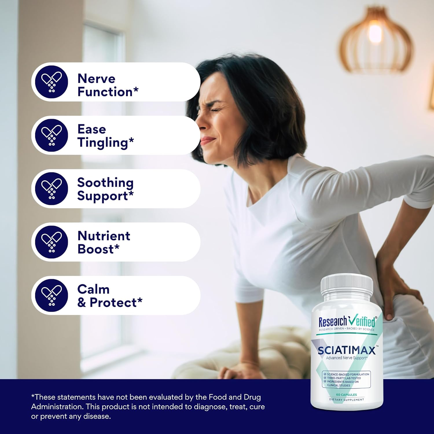 Sciatimax delivers focused, multi-angle support with three specialized complexes – VitB-X, Mag-X, and AlphaSym – built to address the unique demands of sciatic nerve health. This formula combines active B vitamins, dual-form magnesium, and a bioavailable Alpha Lipoic Acid blend alongside standout herbal extracts like 10:1 Corydalis and Boswellia Serrata standardized to 65% Boswellic Acid. With added BioPerine to help boost absorption, it’s clean, concentrated, and made to deliver.