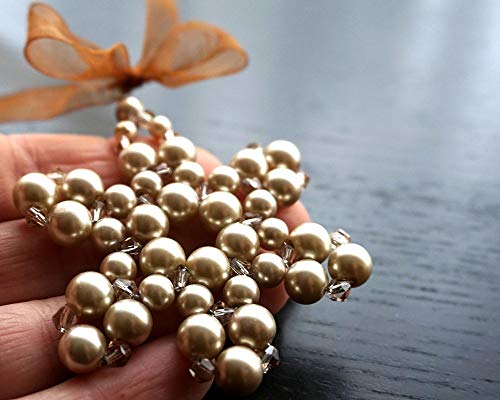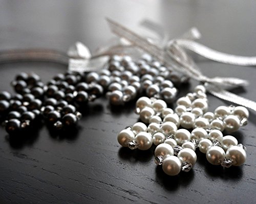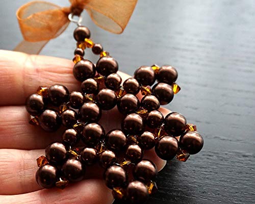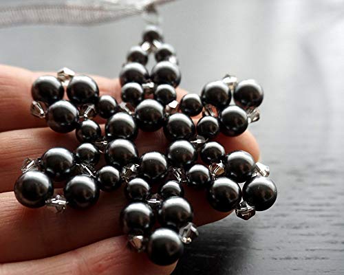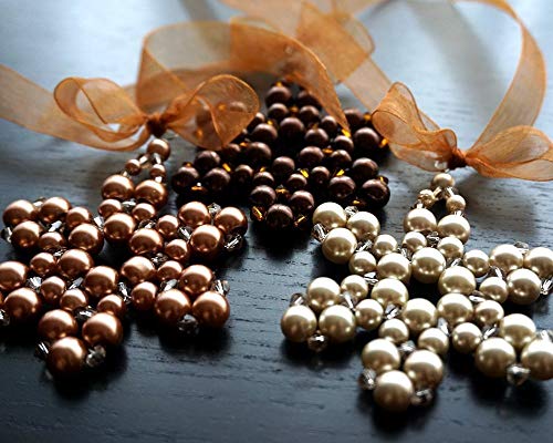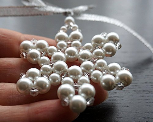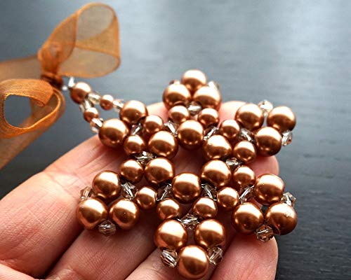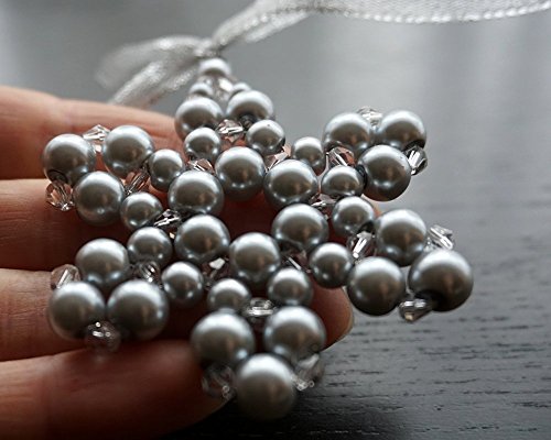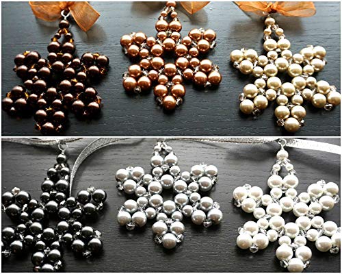 Set of 6 Color Pearl Beaded Snowflake Ornaments White, silver gray, dark gray/black, champagne cream, honey copper, dark copper brown. In this set, you will receive 1 white, 1 silver gray, 1 dark gray/black, 1 champagne, 1 honey copper, and 1 dark copper brown color snowflake. I made these snowflakes with top quality glass pearls (Czech Republic) and Swarovski crystals (Austria). The silver and copper metallic ribbon bow adorns each snowflake. The ornament has a wire loop at the top for easy hanging. These are high quality handmade Christmas ornaments . You can hang them in the sunny window, under your favorite light fixture, or in your powder room. Contact me if you would like custom colors or custom quantities.