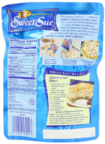 CHICKEN POUCH: SWEET SUE chicken pouches are a tasty and convenient alternative to whole chicken, chicken thighs and chicken wings—these chicken breast pouches are perfect for salads, sandwiches, or wraps