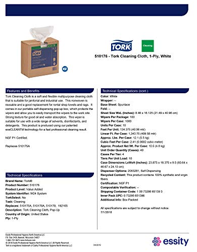 Tork Cleaning Cloth is a soft and flexible multipurpose cleaning cloth that is suitable for janitorial and industrial use. This nonwoven cloth is reusable and a good replacement for rental shop towels and rags. It comes in our portable self-dispensing pop-up box, which protects the wipers and allows you to easily transport the wipers to the work site. Strong texture for good oil and water absorption. This wiper is suitable for use with a wide range of solvents, disinfectants, and detergents. This product is produced using our patented exel CLEAN technology for a fast professional cleaning result. NSF P1 Certified.