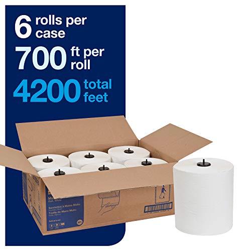 Tork Matic Advanced Paper Towel Roll H1, Paper Hand Towel 290089, 100% Recycled Fiber, High Absorbing, High Capacity 1-Ply, White – 6 Rolls x 700 ft