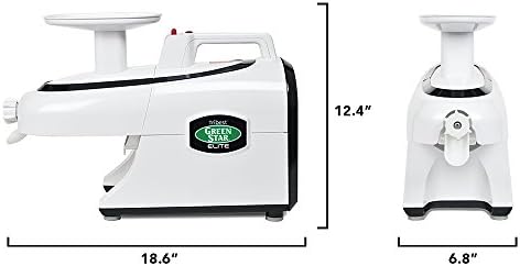 Maximize the yield and quality of your green, vegetable, and fruit juices with the Tribest Greenstar Elite Cold Press Complete Masticating Jumbo Twin Gear Slow Juicer. You can also use your Greenstar Elite Juice Extractor to make other delicious foods with the included homogenizing accessories, such as baby foods, breadsticks, nut butters, frozen fruit sorbets, and much more! The Greenstar Elite Slow Juicer unleashes the very best nutrition that nature has to offer, utilizing advanced bio-ceramic, magnetic Jumbo Twin Gears to get the most nutrients and juice-yield from your produce. The unique shape and properties of Greenstar Elite™s Jumbo Twin Gears extracts more juice and performs better than other Twin Gear, centrifugal, or cold press juicers. The Greenstar Elite Cold-Press Complete Masticating Slow Juicer is the best twin-gear juice extractor for maximizing the nutritional value and yield from all your fruits, vegetables, and greens. Unlike centrifugal juicers that oxidize your juice during extraction, the Greenstar Elite is a slow, cold-press juicer that works at 110 RPM, preserving the quality of your produce so you can enjoy all the healthy benefits of juicing. The unique Twin Gears are made of stainless-steel and stain-resistant nylon for durability and easy cleaning. They are specially patented with bio-ceramic magnetic technology not found in other twin gear or single auger juicers that create a magnetic field as you juice, so your juice is more easily absorbed into your body and stays fresher for longer: up to 72 hours! And while other juicers claim to be masticating juicers, the Greenstar Elite Juicer truly is a complete mastication juice extractor: just as we have three different types of teeth that perform 3 different functions that begin the digestive process, the Greenstar Elite twin gears have 3 stages of mastication, making this juicer a Complete Masticating Juicer.