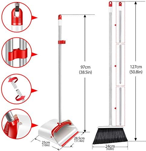 High-quality Build – This broom and dustpan set has steel handles that are extremely rugged and easy to install.Also,the soft rubber lip seamlessly adheres to the ground for creating a strong seal between floor and dustpan,better collecting the wastes