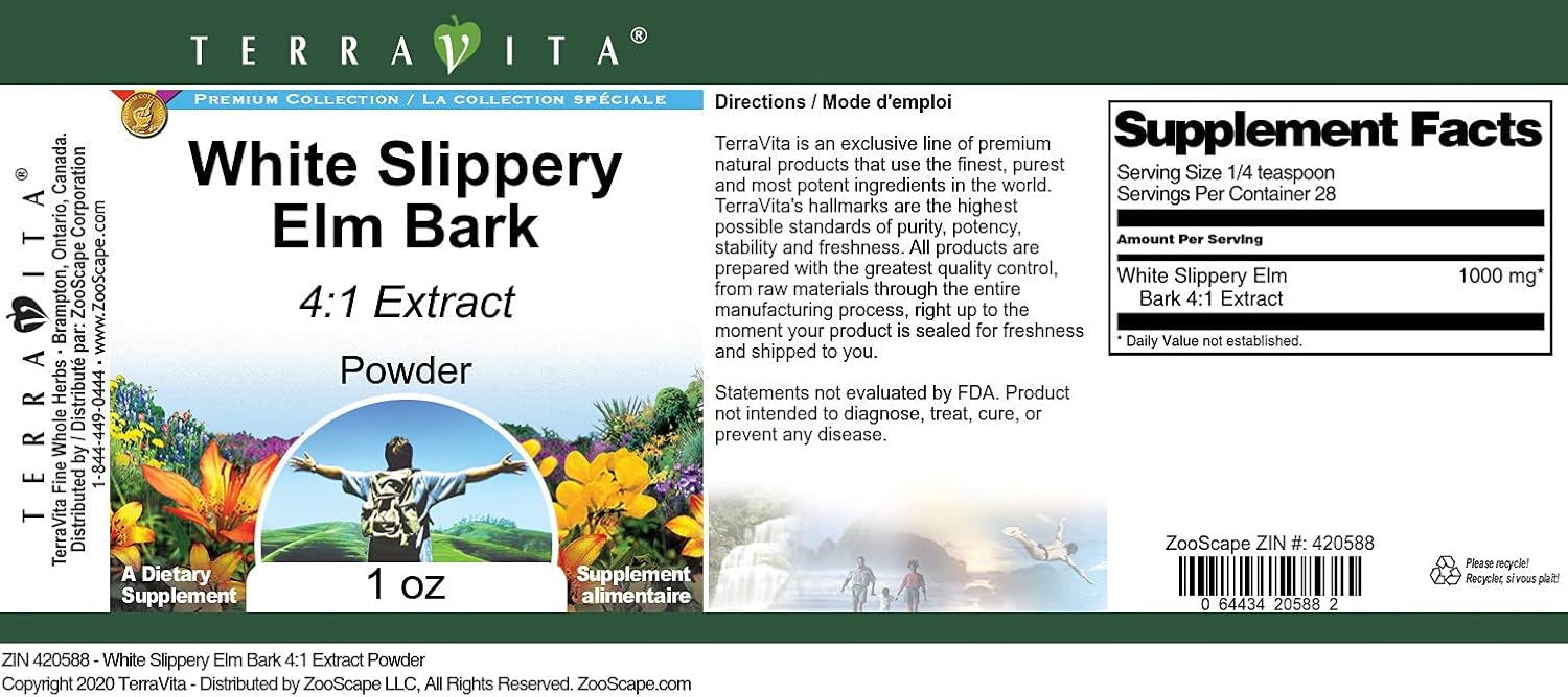 Ingredients: White Slippery Elm Bark 4:1 Extract