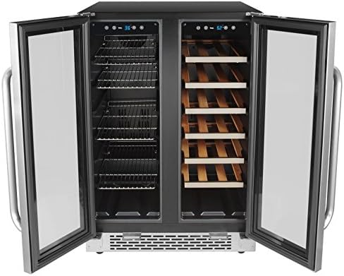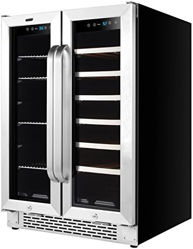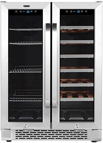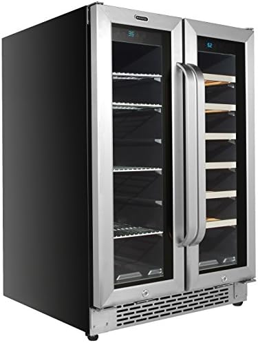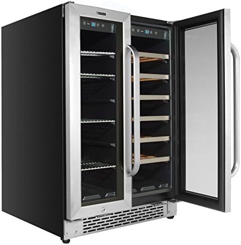 Store your favorite beverages with style in this Whynter 24” Built-In French Door Dual Zone Wine Refrigerator and Beverage Center. It holds 60 standard 12 oz cans in its left zone, and 20 standard 750 ml wine bottles in its right zone, making it perfect for casual parties, dinners, or any other at-home beverage needs.