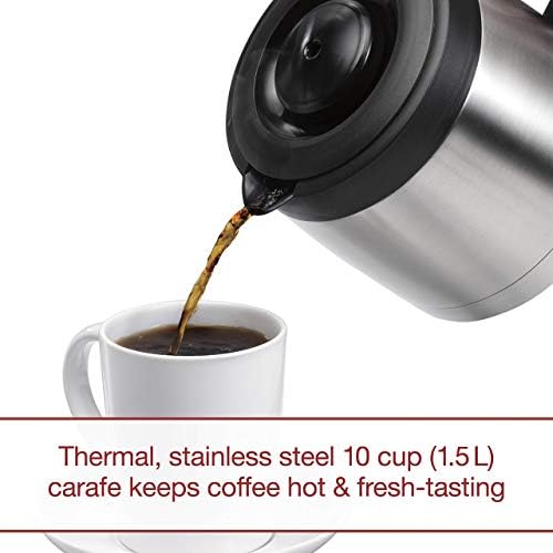 STAINLESS STEEL THERMAL CARAFE: 10-cup carafe with double-wall construction keeps coffee hot and fresh.