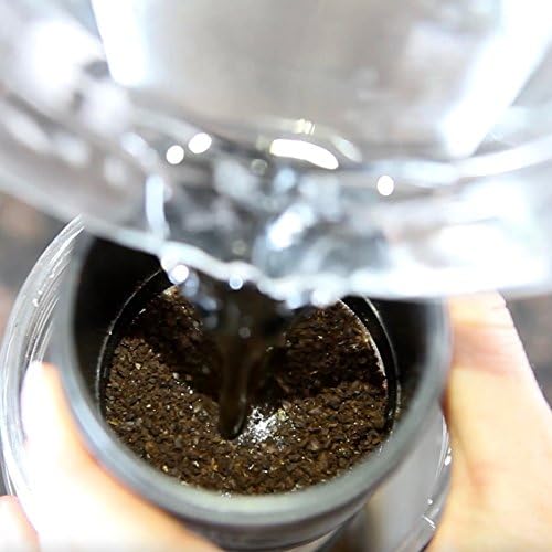 Fill the glass pitcher 3/4 with water. Add 1 cup of medium to coarsely ground coffee to the filter. Then seal the filter by inserting it under the cap and place in the glass pitcher.