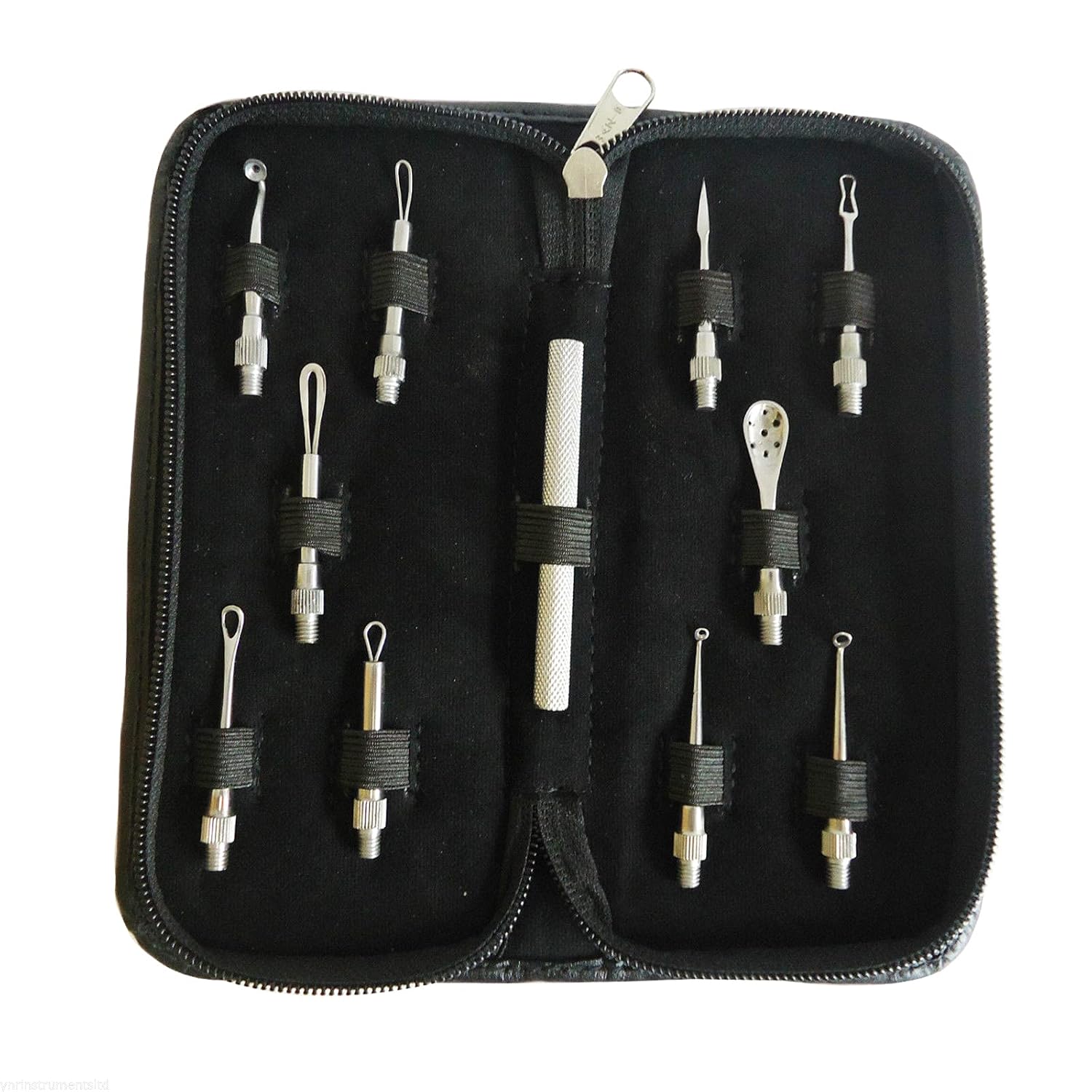 Using Acne Tool Steps: 1.0 Preparing Basic Needs: medical alcohol pads, comedone skincare tools, antiseptic wipes or cotton pads. 2.0 Selecting Right Extracting Tool: big acne with wide loop, needling surface skin and extracting blemishes etc. 3.0 Open the Skin Pores: Washing face with warm water or placing hot wet towel over face for 2-3 minutes. Softening acne and open the pores will help easily remove them. 4.0 Washing Your Hands and Disinfect Extractor Tools: using medical alcohol pads clean acne tools 5.0 Removing acne/pimple/blackhead with comedone tools Feature and Function: ① Two Loops each side: squeezing stubborn acnes, blackhead/whiteheads, pimples and fat granules. Professional designed for acnes treatment and moderate size remove blockage easily ② Sharp Tip and Squeezing loop: using sharp tip easily needles the surface skin of acne and then gently presses the other side loop on the area of acne, pimple or blackhead ③ Triangular and Squeezing loop: special triangular design removes acnes, blackheads and fat granules etc. Squeezing loop side better clean up remained blockages after masking ④⑤ Wide and Fine loops: Wide side for squeezing big acne pores without painful and better for face treatment; fine loop is post-care blemishes and cleaning up remaining and better for nose care Fundamental solutions: 1. Drink water much 2. Intake oily foods in daily life 3. Keep in pleasant mood, and follow health break time avoiding stay up late 4. Do moderate exercise