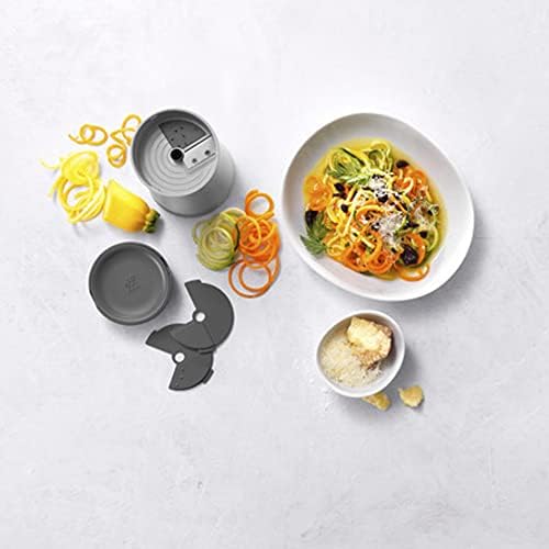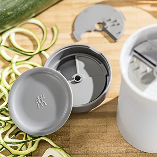Designed and engineered in Germany, Zwilling Z-Cut offers a unique grating and cutting technology to help you get your prep work done effortlessly. Thanks to the integrated, sharp 2-way cutting functionality combined with the unique Z-cut cutting blade teeth design, you get better grating results, faster.Each tool boasts a sleek minimalist design that offers the utmost in comfort and ergonomics.Z-cut was engineered using the long tradition of cutting expertise that only ZWILLING can offer. From fine and medium grating, to coarse grating, and slicing, you can enjoy more output, with less effort. And the slip-proof design makes Z-Cut safe and easy to use.The 4-functions-in-1 spiralizer is perfect for creating vegetable noodles and long spirals, with 3 exchangeable blades and a storage box.